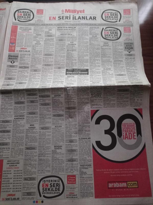 Sayfa Boyutu: 38*56cm Sayfa Sayısı: 30 Milliyet Gazetesi Yıpranma, sararmalar, kupon kesiği ve yırtılmalar zamana bağlı olarak görülebilir