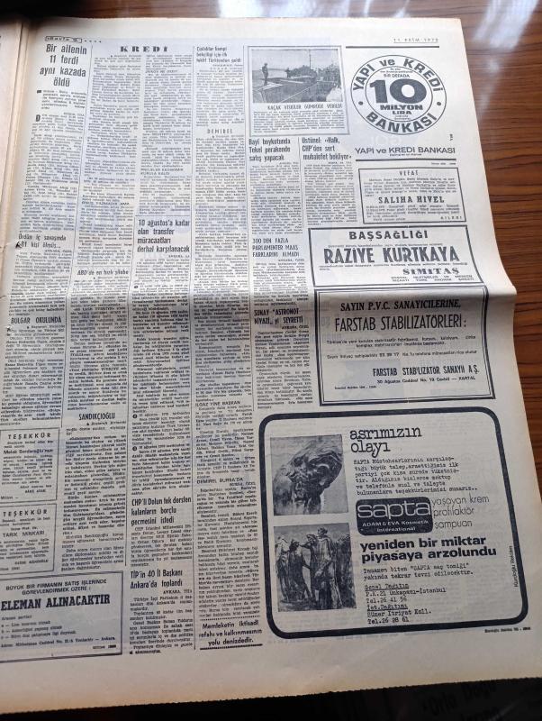 Milliyet Gazetesi - 11 Ekim 1970 - Mete Akyol İşin İçyüzünü Anlattı Kredi Haberleri Doğrudur - Süleyman Demirel Partide Tesanüt İstedi - Süleyman Demirel'in Suçlamaları Yazan Abdi İpekçi Köşe Yazısı - Muhittin Sandıkçıoğlu Galatasaray Lisesi Müdürlüğünden Emekli Oldu - Milliyet 1970 Türkiye Güzelini Seçiyor Adaylar Dilek Aksu - ABD'de En Hızlı Şilebe Türkiye Adını Koydular - Şili Sağdan Sola Yazan Talat Halman - Dominolar Devrilirken Yazan İsmail Cem - Bilimsel Yarışma Sonuçlandı Bilim Ödülünü Profesör Orhan Ulutin Aldı - Migros'ta Grev Başladı - Taş Arabası Yazan Altan Erbulak - Karaoğlan Yazan Ve Çizen Suat Yalaz - Tehlikeli Çocuk Çeviren Nihal Akkaya Yazı Dizisi - Şeytanistan Yazan Ali Yüce Yazı Dizisi - Nasır'sız Kalan Arap Alemi Yazan Metin Toker Yazı Dizisi - Ayak Bacak Fabrikası Azak Tiyatrosunda - Rosenbergler Ölmemeli Oyunu Yöneten Genco Erkal Konuk Oyuncu Ayla Algan - Milli Takıma Antrenör Aranıyor - 1948 Olimpiyatları Grekoromen Ağır Siklet Şampiyonu Mersinli Ahmet adlı eser, Kitap > Süreli Yayınlar > Gazeteler > Türkiye > Genel > Günlük kategorisinde İkinci El olarak satıştadır.