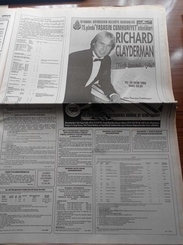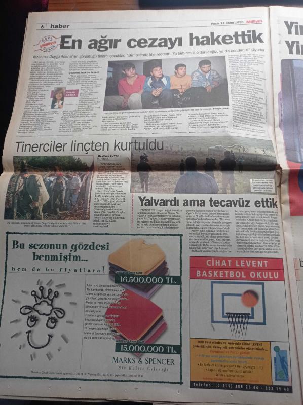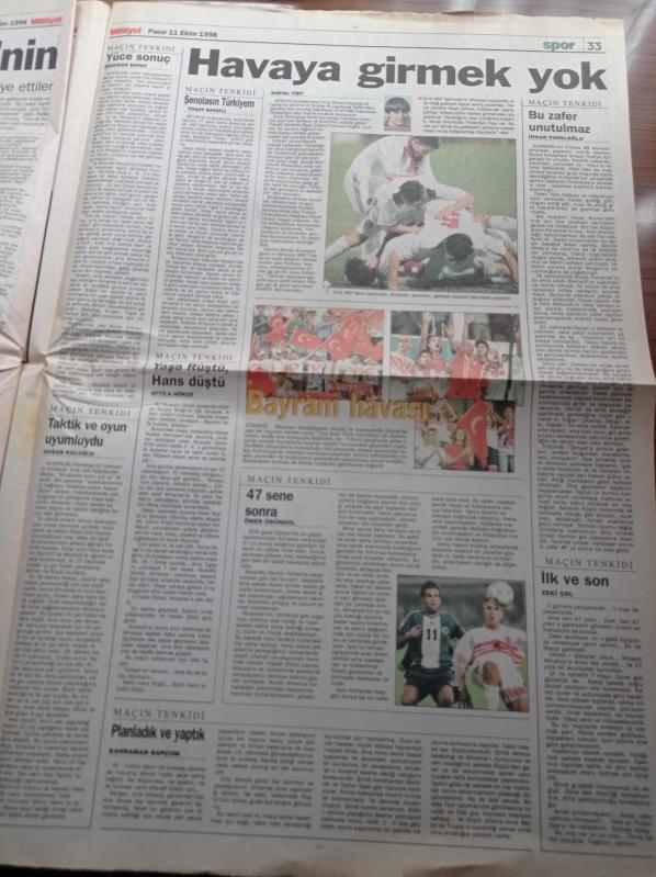 Milliyet Gazetesi - 11 Ekim 1998 - Milli Takım 47 Yıl Aradan Sonra Almanya'yı Yendi - Mustafa Denizli - Ogün Temizkanoğlu - Yargıtay Başsavcısı Vural Savaş Refah Partisi'nin Kapatılma Gerekçesini Açıkladı - Serpil Öğretmene Tecavüz Edip Öldüren 4 Çocuk Artık Yaşayamayız Diyorlar - Duygu Asena - Serdar Ortaç Cezaevinde - Aylin Livaneli adlı eser Türkçe dilindedir.