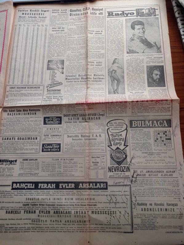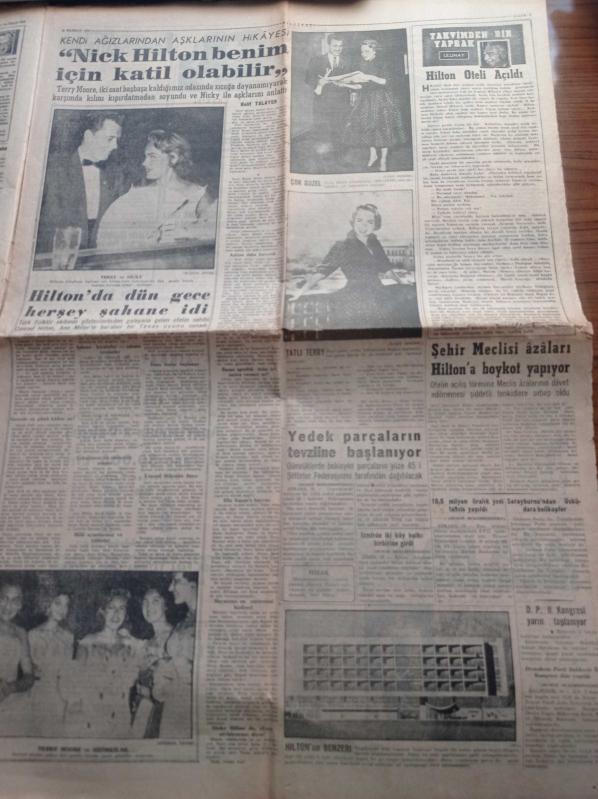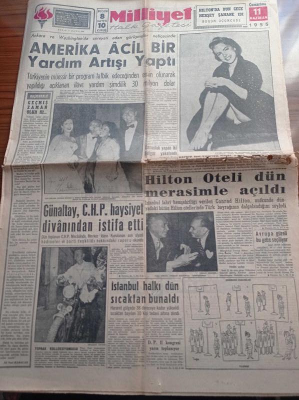 Milliyet Gazetesi - 11 Haziran 1955 - Basketbolda Macarlara Yenildik - Türk Yunan Yugoslav Atletleri Karşı Karşıya - Nicky Hilton'un Yeni Aşkı Terry Moore - Şemsi Günaltay CHP Haysiyet Divanından İstifa Etti - Hilton Oteli Dün Merasimle Açıldı - Casusluk Yapan İki Bulgar Yakalandı - Peyami Safa - Şehir Meclisi Azaları Hilton'a Boykot Yapıyor adlı eser Türkçe dilindedir.