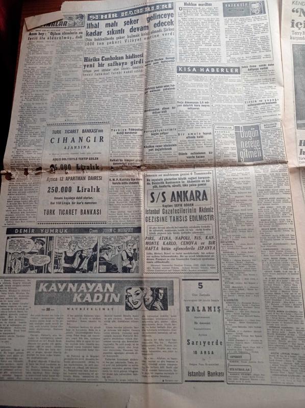 Milliyet Gazetesi - 11 Haziran 1955 - Basketbolda Macarlara Yenildik - Türk Yunan Yugoslav Atletleri Karşı Karşıya - Nicky Hilton'un Yeni Aşkı Terry Moore - Şemsi Günaltay CHP Haysiyet Divanından İstifa Etti - Hilton Oteli Dün Merasimle Açıldı - Casusluk Yapan İki Bulgar Yakalandı - Peyami Safa - Şehir Meclisi Azaları Hilton'a Boykot Yapıyor adlı eser, Kitap > Süreli Yayınlar > Gazeteler kategorisinde İkinci El olarak satıştadır.