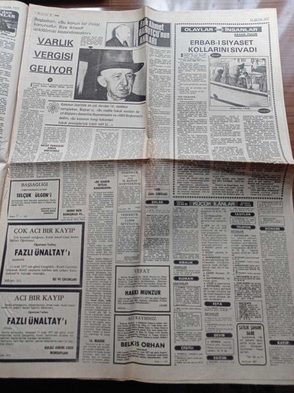 Milliyet Gazetesi - 11 Ocak 1977 - Refik Erduran - Mümtaz Soysal - Faik Ahmet Barutçu'nun Anıları - Örsan Öymen - Hasan Pulur - Fenerbahçe Tribünlerinden Cemil Turan'a Büyük Sevgi Gösterisi - Galatasaray Teknik Direktörü Malcolm Allison - İsrail Ebu Davut'u Fransa'dan İstiyor - ABD 40 Fantom Uçağı İçin Bize 69,6 Milyon Dolar Kredi Veriyor - Valilik Ankara Ülkü Ocakları Şubesini Bir Ay Kapattı - İçişleri Bakanı Oğuzhan Asiltürk Bu Dönem Trafik Yasasını Çıkartacağız - Süleyman Demirel adlı eser Türkçe dilindedir.