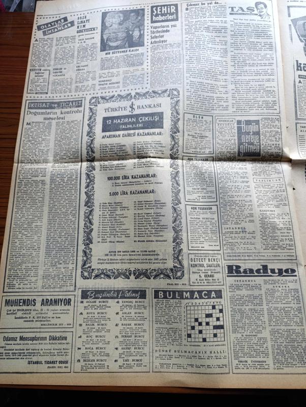 Milliyet Gazetesi - 13 Haziran 1962 - İsmet İnönü Yeni Türkiye Partisi Ve Cumhuriyetçi Köylü Millet Partisi Liderleri İle Görüştü - Üçlü Bir Koalisyon İhtimali Kuvvetlendi - Cevdet Perin Adalet Partisinden Çekildi - Millet Partisi Kuruluyor - İstanbul'a Gelen Ünlü Fransız Aktristi Marie Bell'e 4 Kırmızı Gül - Sovyetler 35 Milyon Türk'ü Ruslaştırmaya Çalışıyorlar - Dün Bir Öğrenci Daha İmtihandan Sonra Öldü - İslamiyet Afrika'da Hızlıca Yayılıyor - Çetin Altan Köşe Yazısı - Sarışın Bomba Jayne Mansfield Bir Sütyenle Kaldı - Amerikalı Astronot Yarbay John Glenn'in Dostluk 7 Kapsülü İstanbul'a Geldi - Akbaba Dergisi Hüseyin Korkmazgil Yusuf Ziya Ortaç Ve Rıfat Ilgaz - Abdülcanbaz'ın Maceraları Çizen Turhan Selçuk - Gelin Taşı Yazan Yaman Koray Yazı Dizisi - Kızıl Kadırga Yazan Abdullah Ziya Kozanoğlu Yazı Dizisi - Cici Can Çizen Bedri - 27 Mayıs'ın Gerisindeki 5 Yılın Hikâyesi Hazırlayanlar Ömer Sami Coşar Abdi İpekçi - Zaman Ve Şöhrete Karşı Yıkılmayan Şöhretler - Katherine Hepburn adlı eser, Kitap > Süreli Yayınlar > Gazeteler > Türkiye > Genel > Günlük kategorisinde İkinci El olarak satıştadır.