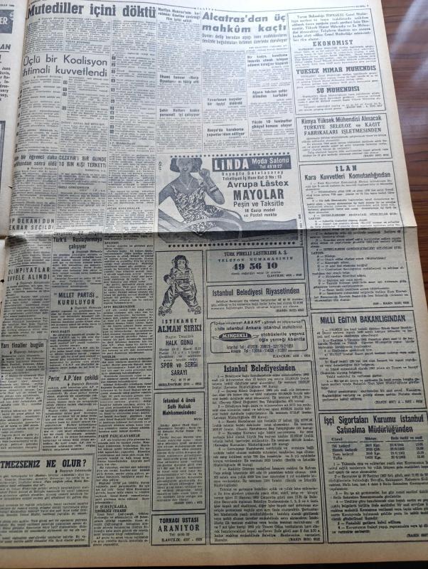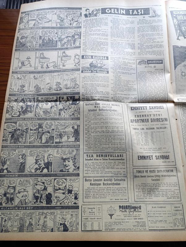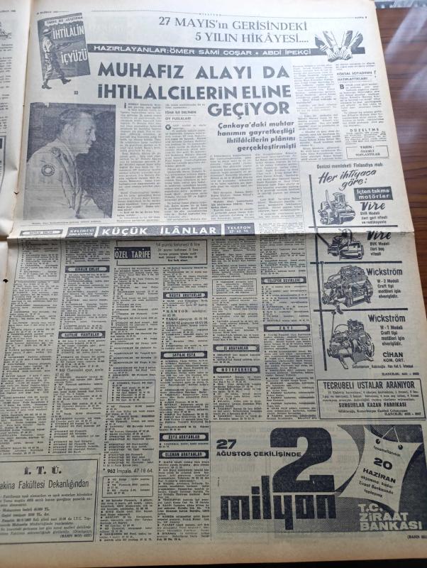 Milliyet Gazetesi - 13 Haziran 1962 - İsmet İnönü Yeni Türkiye Partisi Ve Cumhuriyetçi Köylü Millet Partisi Liderleri İle Görüştü - Üçlü Bir Koalisyon İhtimali Kuvvetlendi - Cevdet Perin Adalet Partisinden Çekildi - Millet Partisi Kuruluyor - İstanbul'a Gelen Ünlü Fransız Aktristi Marie Bell'e 4 Kırmızı Gül - Sovyetler 35 Milyon Türk'ü Ruslaştırmaya Çalışıyorlar - Dün Bir Öğrenci Daha İmtihandan Sonra Öldü - İslamiyet Afrika'da Hızlıca Yayılıyor - Çetin Altan Köşe Yazısı - Sarışın Bomba Jayne Mansfield Bir Sütyenle Kaldı - Amerikalı Astronot Yarbay John Glenn'in Dostluk 7 Kapsülü İstanbul'a Geldi - Akbaba Dergisi Hüseyin Korkmazgil Yusuf Ziya Ortaç Ve Rıfat Ilgaz - Abdülcanbaz'ın Maceraları Çizen Turhan Selçuk - Gelin Taşı Yazan Yaman Koray Yazı Dizisi - Kızıl Kadırga Yazan Abdullah Ziya Kozanoğlu Yazı Dizisi - Cici Can Çizen Bedri - 27 Mayıs'ın Gerisindeki 5 Yılın Hikâyesi Hazırlayanlar Ömer Sami Coşar Abdi İpekçi - Zaman Ve Şöhrete Karşı Yıkılmayan Şöhretler - Katherine Hepburn, Ali Naci Karacan tarafından kaleme alınmıştır. Milliyet Gazetesi - 13 Haziran 1962 - İsmet İnönü Yeni Türkiye Partisi Ve Cumhuriyetçi Köylü Millet Partisi Liderleri İle Görüştü - Üçlü Bir Koalisyon İhtimali Kuvvetlendi - Cevdet Perin Adalet Partisinden Çekildi - Millet Partisi Kuruluyor - İstanbul'a Gelen Ünlü Fransız Aktristi Marie Bell'e 4 Kırmızı Gül - Sovyetler 35 Milyon Türk'ü Ruslaştırmaya Çalışıyorlar - Dün Bir Öğrenci Daha İmtihandan Sonra Öldü - İslamiyet Afrika'da Hızlıca Yayılıyor - Çetin Altan Köşe Yazısı - Sarışın Bomba Jayne Mansfield Bir Sütyenle Kaldı - Amerikalı Astronot Yarbay John Glenn'in Dostluk 7 Kapsülü İstanbul'a Geldi - Akbaba Dergisi Hüseyin Korkmazgil Yusuf Ziya Ortaç Ve Rıfat Ilgaz - Abdülcanbaz'ın Maceraları Çizen Turhan Selçuk - Gelin Taşı Yazan Yaman Koray Yazı Dizisi - Kızıl Kadırga Yazan Abdullah Ziya Kozanoğlu Yazı Dizisi - Cici Can Çizen Bedri - 27 Mayıs'ın Gerisindeki 5 Yılın Hikâyesi Hazırlayanlar Ömer Sami Coşar Abdi İpekçi - Zaman Ve Şöhrete Karşı Yıkılmayan Şöhretler - Katherine Hepburn adlı eser Türkçe dilindedir.