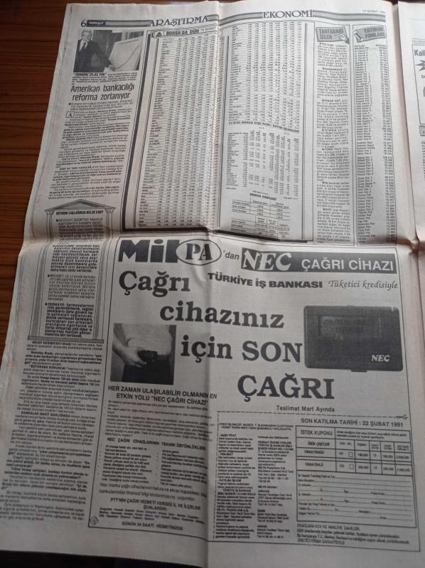 Milliyet Gazetesi - 13 Şubat 1991 - Galatasaray'da Rotariu Rötarı - Fenerbahçe deprem Şoku - Yıldırım Akbulut Semra Özal'la Yarışırım - Semra Özal'ın Rakibi Ali Coşkun - Deniz Baykal Erdal İnönü Bocaladı - Savaşa 4 Son - Dün Körfez Krizini Sona Erdirmenin Çarelerini Arıyor - Süleyman Demirel - Turgut Özal adlı eser, Kitap > Süreli Yayınlar > Gazeteler kategorisinde İkinci El olarak satıştadır.