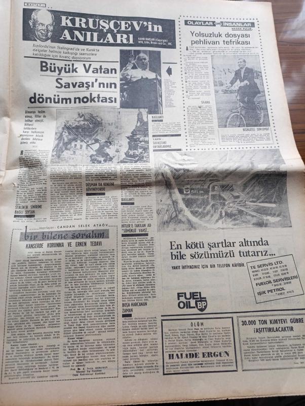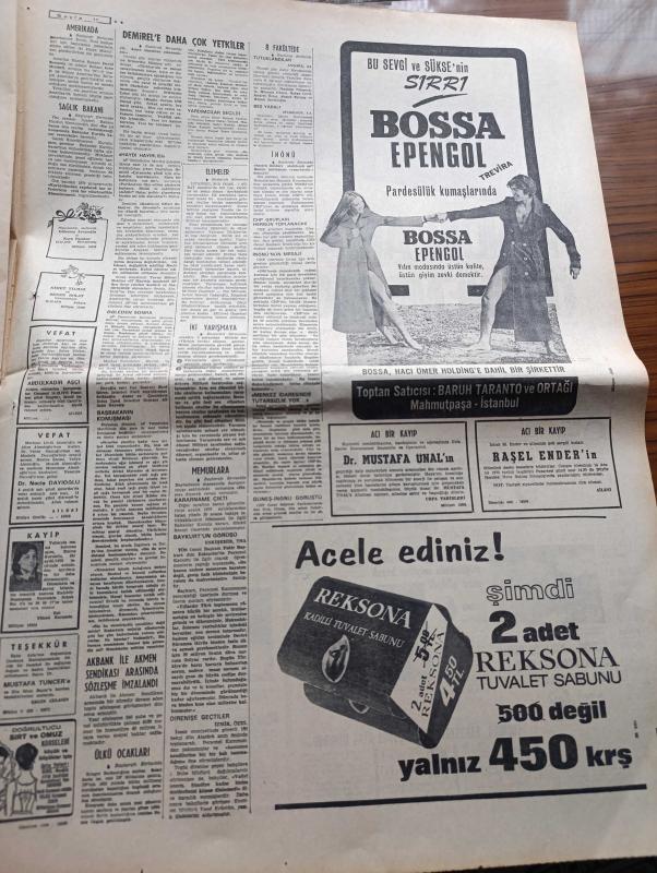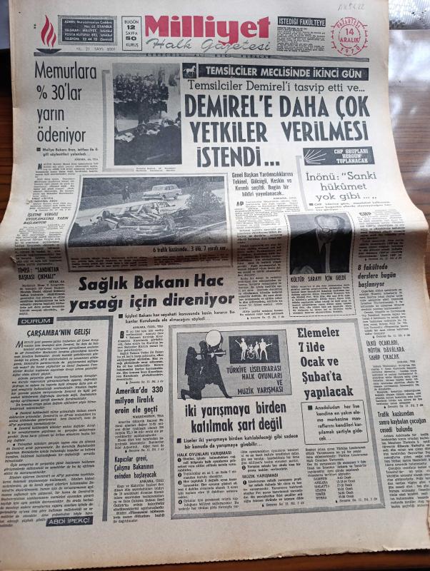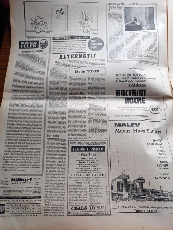 Milliyet Gazetesi - 14 Aralık 1970 - Çarşamba'nın Gelişi Yazan Abdi İpekçi Köşe Yazısı - Memurlara %30'lar Yarın Ödeniyor - Süleyman Demirel'e Daha Çok Yetkiler Verilmesi İstendi - İsmet İnönü Sanki Hükümet Yok Gibi - Sağlık Bakanı Hac Yasağı İçin Direniyor - Ülkü Ocakları Bütün Davalara Sahip Çıkacak - Kapıcılar Grevi Çalışma Bakanı Seyfi Öztürk'ün Evinden Alındı - Burhan Felek Köşe Yazısı - 13 Dilde Şarkı Söyleyen Zaliha Londra'yı Fethediyor - Renault Fabrikalarında Günde Tam 5 Bin Araba Yapılıyor - Evli Bir Kadının Günlüğünden Yazan Peride Celal Yazı Dizisi - Karaoğlan Yazan Ve Çizen Suat Yalaz - Murat Davman'ın Son Macerası İki Kere İki On İki Eder Yazan Ümit Deniz Yazı Dizisi - Hoş Memo Karikatür Çizen Al Capp - Johnny Hazard Çizen Frank Robbins - Sahne Aşkları Çizen Leonard Starr - Allahlık Ali Bey Çizen Swan - Kruşçev'in Anıları Yazı Dizisi - Jackie Onnasis Film Çevirecek - Milli Takım Arnavutluk'u Yendi Ama Öğünemedi adlı eser, Kitap > Süreli Yayınlar > Gazeteler > Türkiye > Genel > Günlük kategorisinde İkinci El olarak satıştadır.