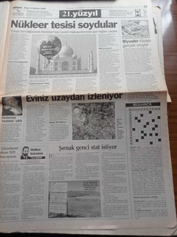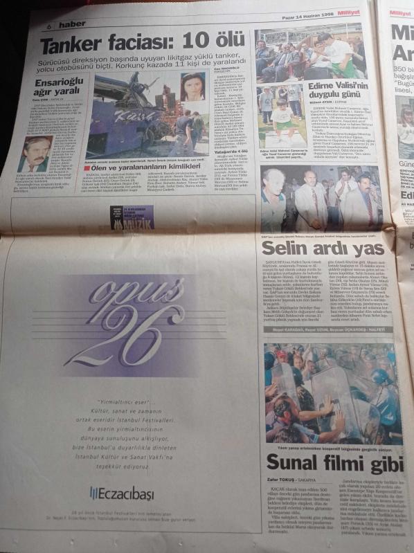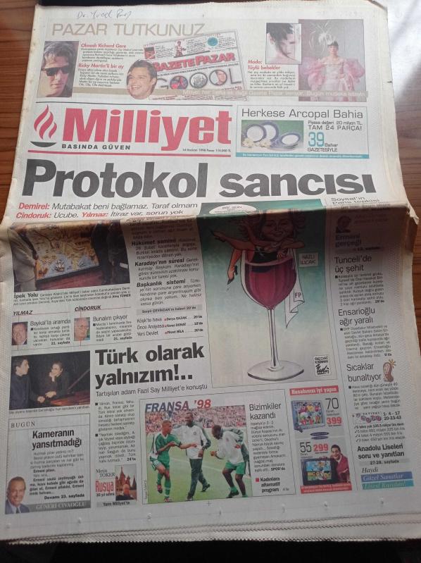 Milliyet Gazetesi - 14 Haziran 1997 - Fransa 98 Dünya Kupası - Amokachi - Okocha - Uche - Fazıl Say Türk Olarak Yalnızım - Devlette Protokol Sancısı - Süleyman Demirel Mutabakat Beni Bağlamaz Taraf Olmam - Genelkurmay Başkanı Orgeneral Hüseyin Kıvrıkoğlu'nun Görev Süresinin Uzatılması Konusunda Bir Talebi Yok - DYP Diyarbakır Milletvekili Salim Ensarioğlu Trafik Kazası Geçirdi Ağır Yaralı - Başkanlık Sistemi - 28 Şubat - Hüsamettin Cindoruk - İpek Yolu adlı eser Türkçe dilindedir.