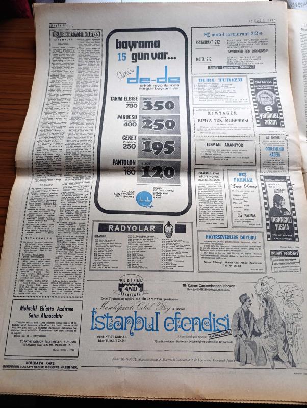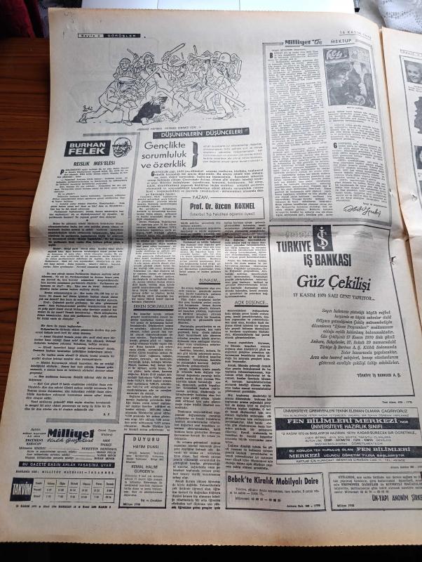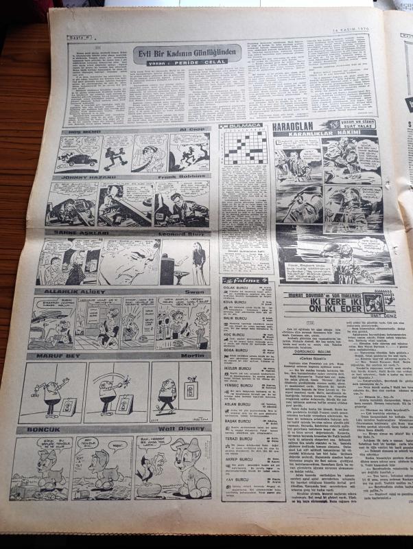 Milliyet Gazetesi - 16 Kasım 1970 - Ortak Pazarda 23 Kasım'da Altı Ek Anlaşma imzalıyoruz - 22 Yıllık Gümrük İndirimi Belli Oldu- Siklon Sebebiyle Pakistan'da Bir Günde 15 Bin Ceset Toplandı - CHP'li Aleviler Genel Sekreter Bülent Ecevit'i Destekliyor - Uçak Kaçırma Yakınlaşma Politikasına Zarar Veriyor - Hangisi Daha Güzel Dünya Güzellik Yarışması Adayları Fotoğraf - Abdi İpekçi Köşe Yazısı - Evli Bir Kadının Günlüğünden Yazan Peride Celal Yazı Dizisi - Karaoğlan Yazan Ve Çizen Suat Yalaz - Murat Davman'ın Son Macerası İki Kere İki On İki Eder Yazan Ümit Deniz - Hoş Memo Karikatür Çizen Al Capp - Johnny Hazard Çizen Frank Robbins - Sahne Aşkları Çizen Leonard Starr - Kadro Hareketi Yazan Şevket Süreyya Aydemir Yazı Dizisi - Galatasaray 4 Dakikada Yok Oldu - Beşiktaş Samsunspor Karşısında Son Beş Dakikada Devrildi - Fenerbahçe Göztepe Karşısında Galibiyeti Kaçırdı 0 0 - Şükrü Gülesin - Gündüz Kılıç adlı eser, Kitap > Süreli Yayınlar > Gazeteler > Türkiye > Genel > Günlük kategorisinde İkinci El olarak satıştadır.