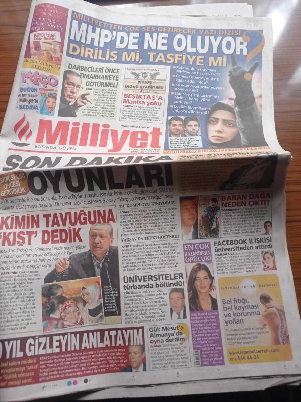 Milliyet Gazetesi - 17 Ekim 2010 - MHP'de Ne Oluyor Diriliş Mi Tasfiye Mi - Darbecileri Önce Tımarhaneye Götürmeli - Sur Belediye Başkanı Abdullah Demirbaş - Facebook İlişkisi Üniversitesiden Attırdı - Başbakan Recep Tayyip Erdoğan Kimin Tavuğuna Kışt Dedik - Turgut Özal'ın Özel Kalem Müdürü Feyzi İşbaşaran - Üniversiteler Türbanda Bölündü adlı eser, Kitap > Süreli Yayınlar > Gazeteler kategorisinde İkinci El olarak satıştadır.