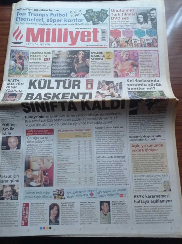 Milliyet Gazetesi - 17 Temmuz 2009 - Galatasaray Turu İstanbul'a Bıraktı - Formula 1 Hızında Festival Rockn Coke - YÖK'ten APS İle İstifa - Bülent Serim - Jitemci Albay Arif Doğan'a Sağlık Tahliyesi - Kültür Başkenti İstanbul Sınıfta Kaldı - Hasta Mahkumlar adlı eser Türkçe dilindedir.