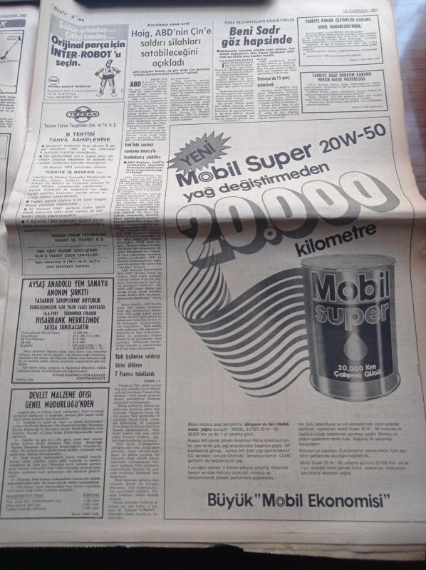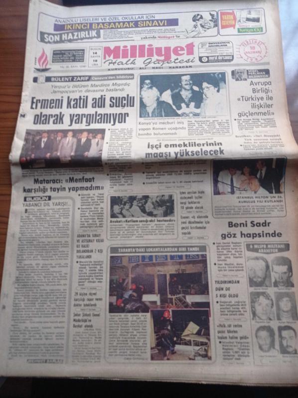 Milliyet Gazetesi - 18 Haziran 1981 - Mehmet Barlas - Burhan Felek - Turhan Selçuk - Çetin Altan - Kral Pele'nin Oynadığı Cosmos Takımında Bir Türk Yasin Özdenak Baş Antrenörlüğe Hazırlanıyor - Kırkpınar Güreşleri - Ermeni Katil Mardiros Mıgırdıç Jamgoçyan'ın Davasına Başlandı - Avrupa Birliği Türkiye İle İlişkiler Güçlenmeli - Beni Sadr Göz Hapsinde - 6 MLSPB Militanı Aranıyor - Şemsi Özkan adlı eser, Kitap > Süreli Yayınlar > Gazeteler kategorisinde İkinci El olarak satıştadır.