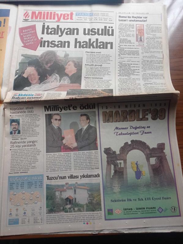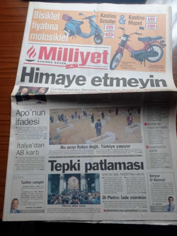 Milliyet Gazetesi - 18 Kasım 1998 - Süleyman Demirel'den Romaya Abdullah Öcalan'ı Himaye Etmeyin - HADEP Genel Başkanı Murat Bozlak Ve Yaşar Kaya'ya Hapis - İzmir'de Halk HADEP'lileri Dövdü - Temiz Eller Savcısı Di Pietro - PKK'nın Kilise Oyunu - Galatasaray'ın Rakibi Juventus Abdullah Öcalan'ı Koz Olarak Kullanıyor - Apo'nun İfadesi adlı eser Türkçe dilindedir.
