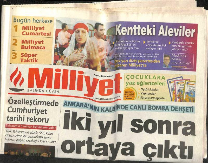 Milliyet Gazetesi 2 Temmuz 2005 - Ankara'nın Kalbinde Canlı Bomba Dehşeti - Kentteki Aleviler GZ157499, en son 18 gün önce güncellenmiştir.