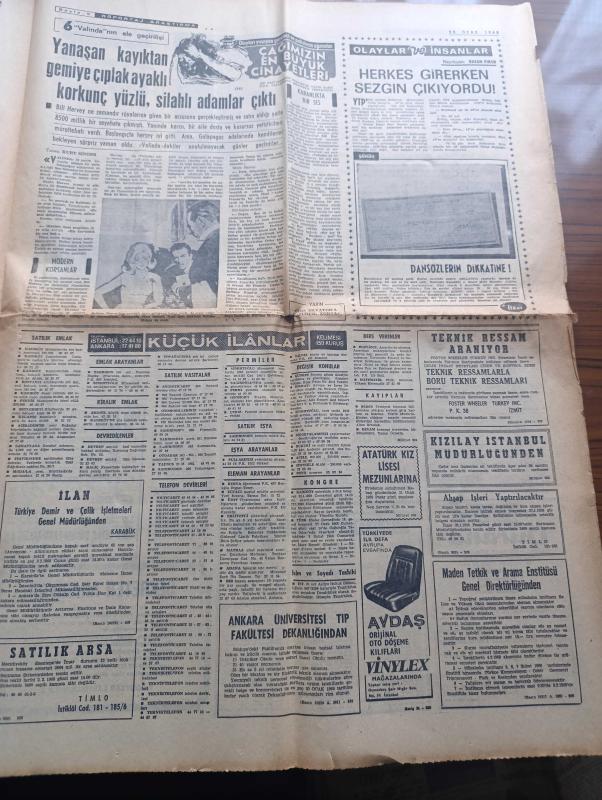 Milliyet Gazetesi - 20 Ocak 1968 - Televizyon Şebekesi Gelecek Yıl Kuruluyor - Devlet Otoritesi İle Alay Edenler 2 Yazan Abdi İpekçi Köşe Yazısı - Kalp Naklinde Bir Engel Daha Aşılıyor Organ Reddini Bir Önleyici Bir Usul Bulundu - Boğaz Köprüsü Projesini İngiliz Firma Yapacak - Boraksı Etibank'ın İşletmesi İstendi - Orhan Kemal'in Yalova Kaymakamı Piyesi Ulvi Uraz'ın Tiyatrosunda Büyük Bir Başarı Kazandı - Sülün Osman Şarkıcılığa Karar Verdi - Alptekin Viyana Delisi Yazan Ahmet Kozanoğlu Çizen Abdullah Turhan - Abdülcanbaz'ın Maceraları Çizen Turhan Selçuk - Sokaklardan Bir Kız Yazan Orhan Kemal Yazı Dizisi - Çağın En Büyük Cinayetleri Yazan Kurt Singer Yazı Dizisi - Karagöz Armağanı 1968 - İstanbul'un İlginç Gece Kulüplerinden Viski A Go Go Fotoğraf - Durul Gence - Dormen Sanatçıları Büyük Kaza Atlattı - Ahmet Berman'a Sessiz Jübile - Can Bartu'nun İtalya'da Ameliyat Oluşu Senatoda Tartışıldı - Ankaragücü Trafik Kazası Geçirdi - Beşiktaş Stadı 30.000 Kişi Olacak - Muhammed Ali Clay adlı eser, Kitap > Süreli Yayınlar > Gazeteler > Türkiye > Genel > Günlük kategorisinde İkinci El olarak satıştadır.