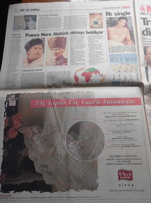 Milliyet Gazetesi - 21 Aralık 1997 - Mesut Yılmaz'a Refah Partisi Sorusu - Sibel Can Çocuk İstiyor - Anayasa Mahkemesi Başkanı Yekta Güngör Özden'in Öfkesi - Orhan Pamuk - Yeşim Salkım - Franco Nero Atatürk Olmayı Bekliyor adlı eser Türkçe dilindedir.