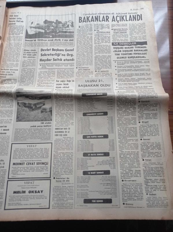 Milliyet Gazetesi - 22 Eylül 1980 - Burhan Felek - Çetin Altan - Bakanlar Açıklandı - Galatasaray'da Bülent Eken'e Geniş Yetkiler Tanındı - Milli Takım İzlanda Maçına Hazırlanıyor - Başbakan Bülend Ulusu - Başbakan Yardımcısı Turgut Özal - Mehmet Özgüneş - İlter Türkmen - Adalet Bakanı Cevdet Menteş - İlhan Öztrak - Milli Savunma Bakanı Haluk Bayülken adlı eser Türkçe dilindedir.