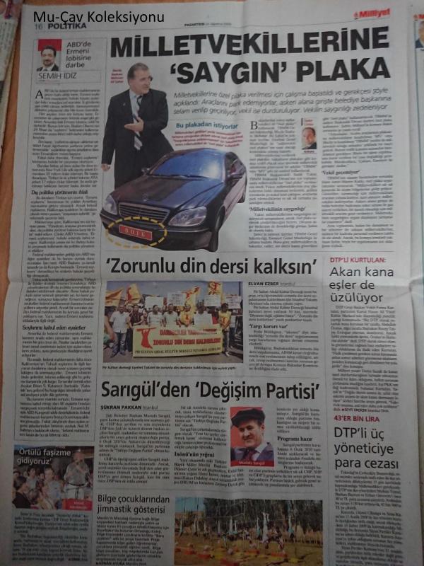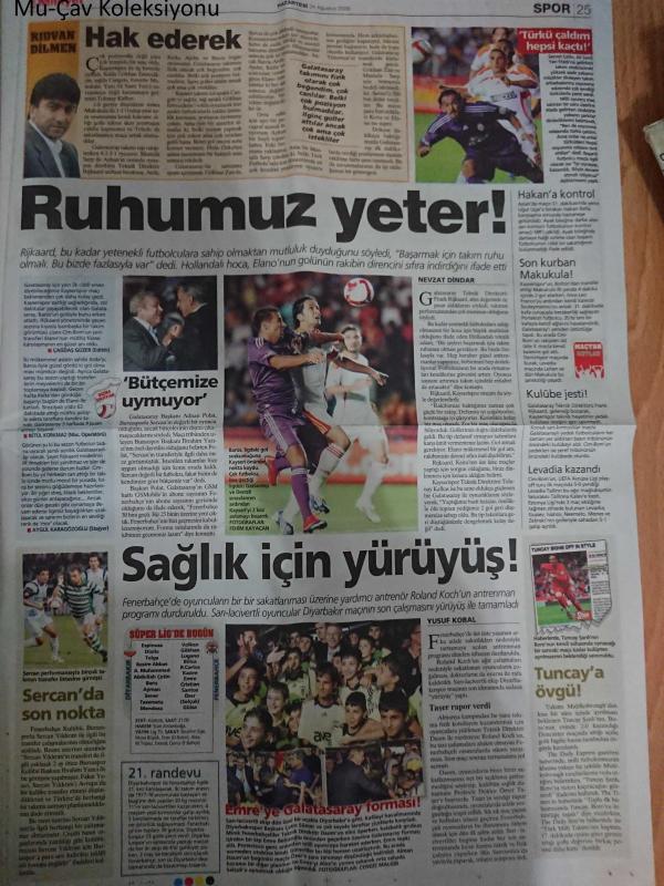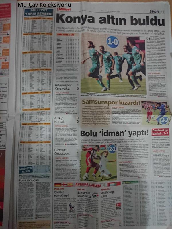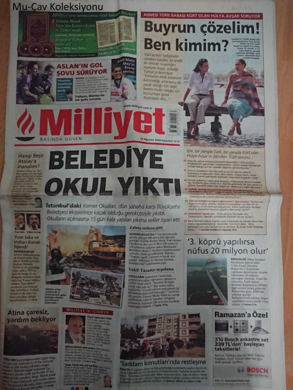Milliyet Gazetesi, 24 Ağustos 2009, Beşir Atalay, Belediye Okul Yıktı, Kemer Okulları, Saddam Konutları, Atina Çaresiz Yardım Bekliyor, 3.Köprü, Fuat Saka, Volkan Konak,Usain Bolt, Rıdvan Dilmen, Fenerbahçe, Sercan Yıldırım, Emre Belözoğlu, Elano, Galatasaray, Trabzonspor, Gaziantepspor 1 Ankaraspor 1, Atletizm, Barrichello, Samsunspor, Sarıgül'den Değşim Partisi adlı eser Türkçe dilindedir.