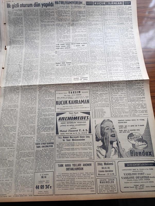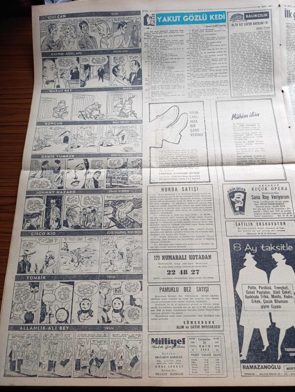 Milliyet Gazetesi - 26 Ekim 1960 - İlk Gizli Oturum Dün Yapıldı - 25 Dakika Süren Oturumda İki Milli Emniyet Müfettişi Dinlendi Athenagoras Aydınlatıcı Bir İfade Vermedi - Maliye Bakanı Ekrem Alican Da Dünkü Duruşmada 6 6 Eylül Olaylarını Anlattı - Düşükler Yassıada'da Filmi Gösteriliyor - Yedek Subay Kanunu Tadil Edilebilecek - Devlet Ve Hükümet Başkanı Cemal Gürsel Adalet Ne Derse O Olacak Dedi - Bugünkü Burç Falınız - Çetin Altan Köşe Yazısı - A Milli Takımı Beyoğluspor'u 4 0 Yendi - Galatasaray Karagümrük İçin Kampa Giriyor - Wembley Stadında İngiltere İspanya Maçı - Abdülcanbaz'ın Maceraları Çizgi Roman Çizen Turhan Selçuk - Yakut Gözlü Kedi Yazan Ümit Deniz Yazı Dizisi - Cici Can Çizen Bedri - Sahne Aşkları Çizen Leonard Starr - Demir Yumruk Çizen John C. Murphy - Cisco Kid Çizen Jose Salinas Rod Reed- Tombik Çizen Trog - Bedri'nin Fırçasından Yassıada İntibaları - Halit Kıvanç Yassıada'dan Bildiriyor - Yüksek Adalet Divanındaki 11 Davanın Sırası Belli Oldu- Adnan Menderes adlı eser, Kitap > Süreli Yayınlar > Gazeteler > Türkiye > Genel > Günlük kategorisinde İkinci El olarak satıştadır.