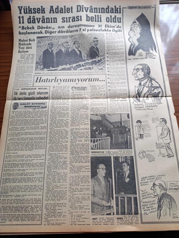 Milliyet Gazetesi - 26 Ekim 1960 - İlk Gizli Oturum Dün Yapıldı - 25 Dakika Süren Oturumda İki Milli Emniyet Müfettişi Dinlendi Athenagoras Aydınlatıcı Bir İfade Vermedi - Maliye Bakanı Ekrem Alican Da Dünkü Duruşmada 6 6 Eylül Olaylarını Anlattı - Düşükler Yassıada'da Filmi Gösteriliyor - Yedek Subay Kanunu Tadil Edilebilecek - Devlet Ve Hükümet Başkanı Cemal Gürsel Adalet Ne Derse O Olacak Dedi - Bugünkü Burç Falınız - Çetin Altan Köşe Yazısı - A Milli Takımı Beyoğluspor'u 4 0 Yendi - Galatasaray Karagümrük İçin Kampa Giriyor - Wembley Stadında İngiltere İspanya Maçı - Abdülcanbaz'ın Maceraları Çizgi Roman Çizen Turhan Selçuk - Yakut Gözlü Kedi Yazan Ümit Deniz Yazı Dizisi - Cici Can Çizen Bedri - Sahne Aşkları Çizen Leonard Starr - Demir Yumruk Çizen John C. Murphy - Cisco Kid Çizen Jose Salinas Rod Reed- Tombik Çizen Trog - Bedri'nin Fırçasından Yassıada İntibaları - Halit Kıvanç Yassıada'dan Bildiriyor - Yüksek Adalet Divanındaki 11 Davanın Sırası Belli Oldu- Adnan Menderes, Ali Naci Karacan tarafından kaleme alınmıştır. Milliyet Gazetesi - 26 Ekim 1960 - İlk Gizli Oturum Dün Yapıldı - 25 Dakika Süren Oturumda İki Milli Emniyet Müfettişi Dinlendi Athenagoras Aydınlatıcı Bir İfade Vermedi - Maliye Bakanı Ekrem Alican Da Dünkü Duruşmada 6 6 Eylül Olaylarını Anlattı - Düşükler Yassıada'da Filmi Gösteriliyor - Yedek Subay Kanunu Tadil Edilebilecek - Devlet Ve Hükümet Başkanı Cemal Gürsel Adalet Ne Derse O Olacak Dedi - Bugünkü Burç Falınız - Çetin Altan Köşe Yazısı - A Milli Takımı Beyoğluspor'u 4 0 Yendi - Galatasaray Karagümrük İçin Kampa Giriyor - Wembley Stadında İngiltere İspanya Maçı - Abdülcanbaz'ın Maceraları Çizgi Roman Çizen Turhan Selçuk - Yakut Gözlü Kedi Yazan Ümit Deniz Yazı Dizisi - Cici Can Çizen Bedri - Sahne Aşkları Çizen Leonard Starr - Demir Yumruk Çizen John C. Murphy - Cisco Kid Çizen Jose Salinas Rod Reed- Tombik Çizen Trog - Bedri'nin Fırçasından Yassıada İntibaları - Halit Kıvanç Yassıada'dan Bildiriyor - Yüksek Adalet Divanındaki 11 Davanın Sırası Belli Oldu- Adnan Menderes adlı eser Türkçe dilindedir.