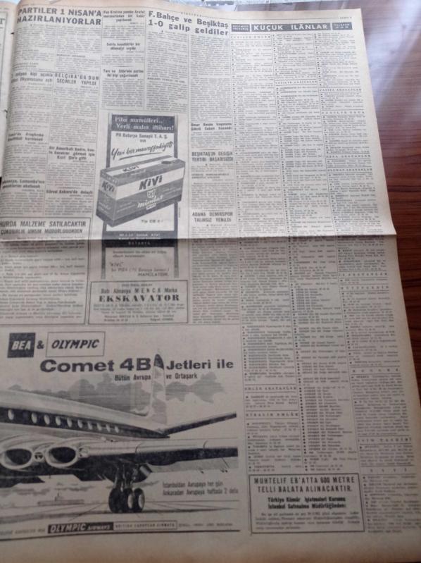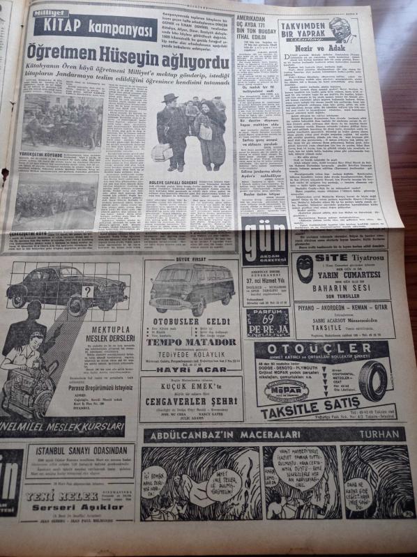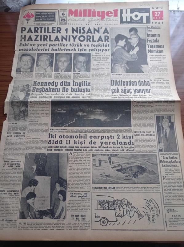 Milliyet Gazetesi - 26 Mart 1961 - Partiler 1 Nisan'a Hazırlanıyorlar - CHP Genel Sekreteri İsmail Rüştü Aksal - Cumhuriyetçi Köylü Millet Partisi Genel Başkanı Osman Bölükbaşı - Yeni Türkiye Partisi Başkanı Ekrem Alican - Vefa Lisesi Mezunu İstanbul Üniversitesi Rektörü Profesör Sıddık Sami Onar - Kıbrıs Cumhurbaşkanı Muavini Fazıl Küçük Yardımı İsraf Etmiyoruz - Motorlu Taşıt İşçileri Sendikalı İşçi Grev Hakkını Melon Şapkalılara Bırakmayınız - Çapa Öğretmen Enstitüsünün Kuruluşunun 113. Yıldönümü - Milliyet Kitap Kampanyası - Çetin Altan Köşe Yazısı - Opon Ağrı Kesici - Abdülcanbaz'ın Maceraları Çizen Turhan Selçuk - Hayır Doktor Hayır Yazan Margueritte Lees Yazı Dizisi - Haldun Dormen - Şehir Tiyatrosu - Pe Re Ja Lavanta Çiçeği Kolonyası - Fenerbahçe Ve Beşiktaş 1 0 Galip Geldiler - Adana Demirspor Talihsiz Yenildi - Brezilyalı Pele'ye Teklif 11 Milyon TL - Ankaragücü Beykoz Önünde Tutunamadı - Rus Âlimlere Göre İnsanın Fezada Yaşaması Mümkün, Ali Naci Karacan tarafından kaleme alınmıştır. Milliyet Gazetesi - 26 Mart 1961 - Partiler 1 Nisan'a Hazırlanıyorlar - CHP Genel Sekreteri İsmail Rüştü Aksal - Cumhuriyetçi Köylü Millet Partisi Genel Başkanı Osman Bölükbaşı - Yeni Türkiye Partisi Başkanı Ekrem Alican - Vefa Lisesi Mezunu İstanbul Üniversitesi Rektörü Profesör Sıddık Sami Onar - Kıbrıs Cumhurbaşkanı Muavini Fazıl Küçük Yardımı İsraf Etmiyoruz - Motorlu Taşıt İşçileri Sendikalı İşçi Grev Hakkını Melon Şapkalılara Bırakmayınız - Çapa Öğretmen Enstitüsünün Kuruluşunun 113. Yıldönümü - Milliyet Kitap Kampanyası - Çetin Altan Köşe Yazısı - Opon Ağrı Kesici - Abdülcanbaz'ın Maceraları Çizen Turhan Selçuk - Hayır Doktor Hayır Yazan Margueritte Lees Yazı Dizisi - Haldun Dormen - Şehir Tiyatrosu - Pe Re Ja Lavanta Çiçeği Kolonyası - Fenerbahçe Ve Beşiktaş 1 0 Galip Geldiler - Adana Demirspor Talihsiz Yenildi - Brezilyalı Pele'ye Teklif 11 Milyon TL - Ankaragücü Beykoz Önünde Tutunamadı - Rus Âlimlere Göre İnsanın Fezada Yaşaması Mümkün adlı eser Türkçe dilindedir.