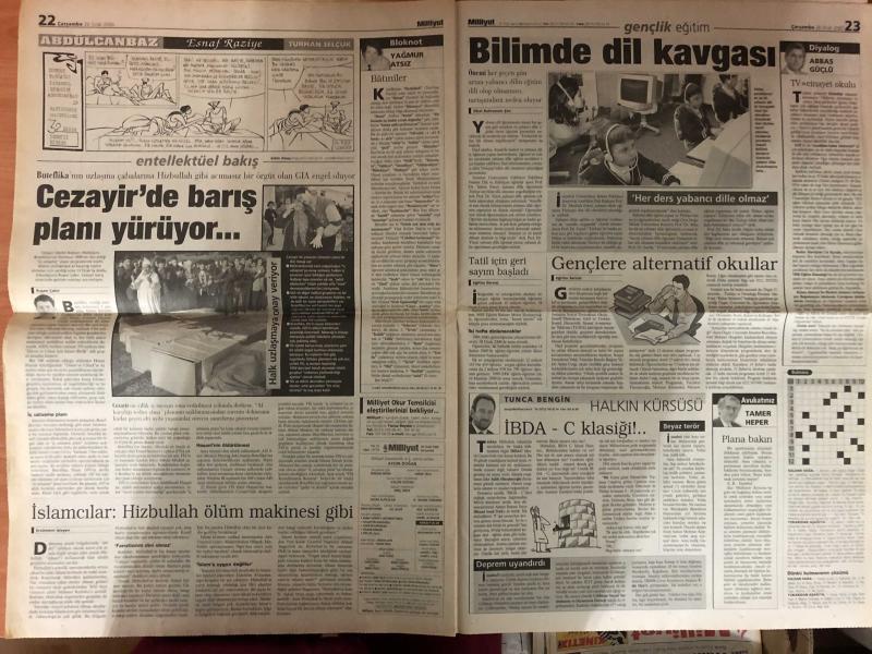 Milliyet Gazetesi - 26 Ocak 2000 - Eder - AP - ANAP - MHP - Anayasa Değişikliği - Sadettin Tantan - Ozan - Trabzonspor - Teknik Direktör - Orman - Galatasaray - Yilmaz - Fenerbahçe - Beta - Agu - Moldova - Arto - Baha - Brezilya - Didi - Azerbaycan - Belçika - Arjantin - MSP - Hollanda - Teknik Heyet - Beşiktaş - Kırmızı Kart - Gol Krallığı - Ahmet Dursun - PAK - Emre - Taffarel - Mehmet Polat - Fatih Terim - Puan Durumu - Alpay - LP - Yusuf - Tayfun - Selçuk - Mehmet Ağar - DYP - Müller - Anayasa Mahkemesi - Vural Savaş - Yasin - Necmettin Erbakan - Onur - Patron - Rusya - Vladimir Putin - Gürcistan - Ukrayna - Özbekistan - HEPAR - Cemil Çiçek - DSP - Bülent Ecevit - Tansu Çiller - Süleyman Demirel - Mesut Yılmaz - Osman Durmuş - Almanya - Isla - Ahmet Tan - Uğur Mumcu - Allan - Adamlar - Mahmut - Terörle Mücadele - Şili adlı eser, Kitap > Süreli Yayınlar kategorisinde İkinci El olarak satıştadır.