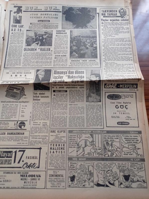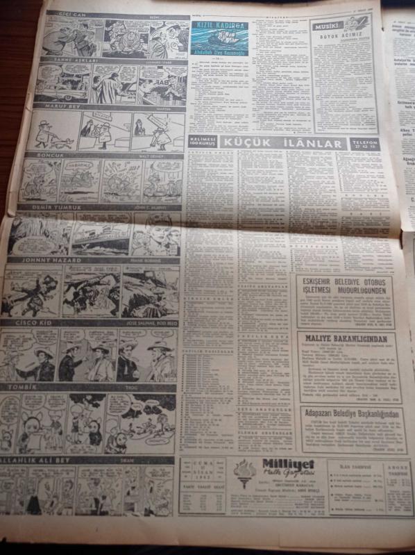 Milliyet Gazetesi - 27 Nisan 1962 - CHP Şartı Kabul Edilmezse Koalisyondan Çekilecek - Cumhuriyetçi Köylü Millet Partililer Af İçin Serbest - 147'ler Pazartesi Derse Başlayacak - Maliye Bakanı Şefik İnan Servet Beyanı Kalmalı Dedi - Elizabeth Taylor Dün Taburcu Oldu - Amerikan Roketi Ay Sathına Çarptı - Gümrük Ve Tekel Bakanı Şevket Bulatoğlu - Özel Teşebbüs Bira Fabrikası Kurulabilecek - Adalet Partisi - Çetin Altan Köşe Yazısı - Suadiye Oteli - Star Marka Masa Radyoları - Walt Disney'in Ayakları - Sami Kohen - Kızıl Kadırga Yazan Abdullah Ziya Kozanoğlu Yazı Dizisi - Docteur Renaud Paris Salatalık Güzellik Sütü - A Milli Takım Peşte'de - Turgay Şeren - Palermo Metin Oktay'a 9 Milyonu Ödeyecek - Brezilya'nın En Formda İki Elemanı Pele Ve Vava - Fiorentinalı Can Bartu Oya Sart İle Evlendi, Ali Naci Karacan tarafından kaleme alınmıştır. Milliyet Gazetesi - 27 Nisan 1962 - CHP Şartı Kabul Edilmezse Koalisyondan Çekilecek - Cumhuriyetçi Köylü Millet Partililer Af İçin Serbest - 147'ler Pazartesi Derse Başlayacak - Maliye Bakanı Şefik İnan Servet Beyanı Kalmalı Dedi - Elizabeth Taylor Dün Taburcu Oldu - Amerikan Roketi Ay Sathına Çarptı - Gümrük Ve Tekel Bakanı Şevket Bulatoğlu - Özel Teşebbüs Bira Fabrikası Kurulabilecek - Adalet Partisi - Çetin Altan Köşe Yazısı - Suadiye Oteli - Star Marka Masa Radyoları - Walt Disney'in Ayakları - Sami Kohen - Kızıl Kadırga Yazan Abdullah Ziya Kozanoğlu Yazı Dizisi - Docteur Renaud Paris Salatalık Güzellik Sütü - A Milli Takım Peşte'de - Turgay Şeren - Palermo Metin Oktay'a 9 Milyonu Ödeyecek - Brezilya'nın En Formda İki Elemanı Pele Ve Vava - Fiorentinalı Can Bartu Oya Sart İle Evlendi adlı eser Türkçe dilindedir.