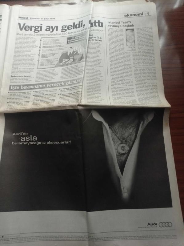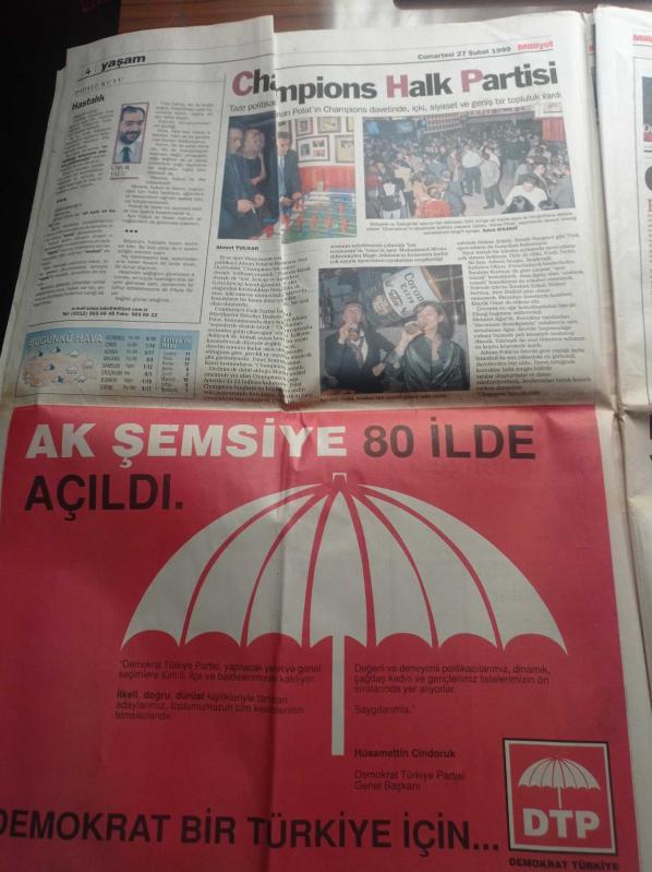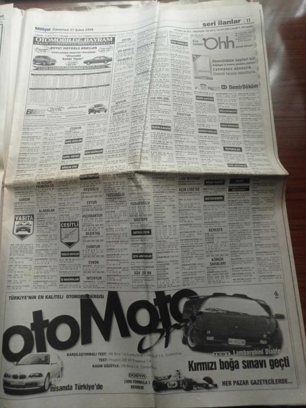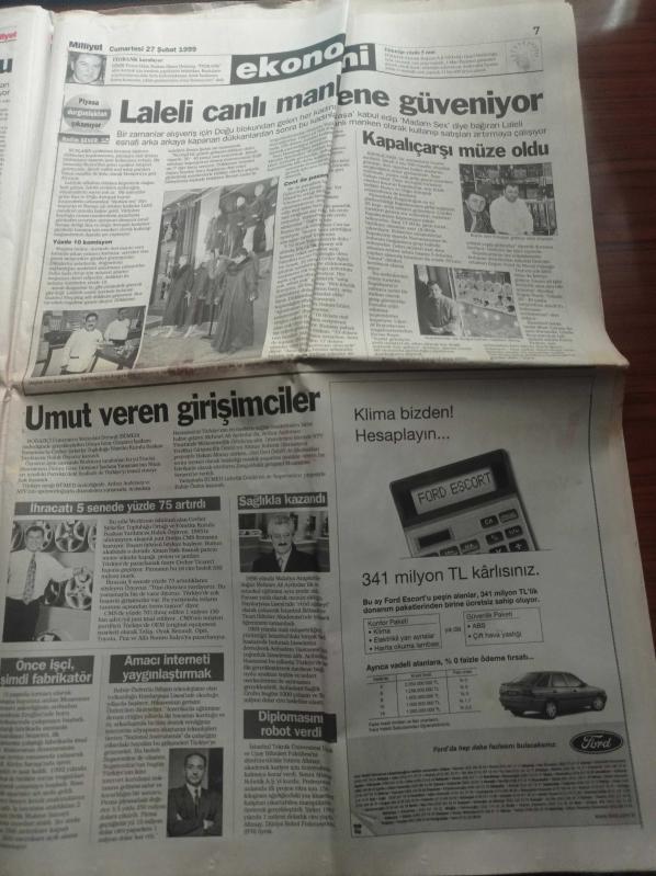 Milliyet Gazetesi - 27 Şubat 1999 - Şifo Mehmet Yeniden Doğdu - - Galatasaray'da Muhalefet Atağa Geçti - Abdullah Öcalan Necmettin Erbakan Bana Ateşkes Önerdi - Abdullah Öcalan'ın Avukatı Ahmet Zeki Okçuoğlu Sustu - Suriye'de Yedek PKK - Demokratik Kitle Partisine Kapatma - Şerafettin Elçi - Asker Askersiz Devlet Güvenlik Mahkemesi - Genelkurmay Başkanı Hüseyin Kıvrıkoğlu Atina Kaçamaz adlı eser Türkçe dilindedir.