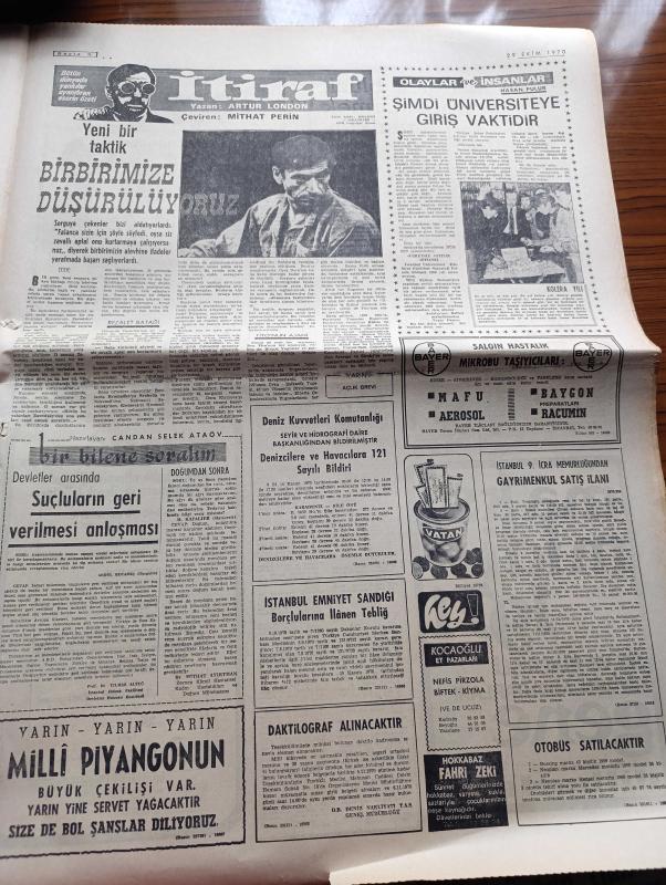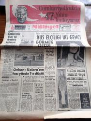 Milliyet Gazetesi - 29 Ekim 1970 - Cumhuriyetin 47. Yılı Törenlerle Kutlanıyor - Turhan Feyzioğlu Halk Sol'dan Adalet Partisinden De Bıktı Dedi - Sağlık Bakanı Vedat Ali Özkan Kolera'nın Hızı Yüzde 1'e Düştü - Bize Albayla Konuşma İzni Vermediler Rus Elçiliği İki Genci Görmek İstedi - Kraliçe Neden Kumral Veya Esmer Olsun - TİP ve Kongresi Yazanlar İsmail Cem - Evli Bir Kadının Günlüğünden Yazan Peride Celal Yazı Dizisi - Hoş Memo Karikatür Çizen Al Capp - Johnny Hazard Çizen Frank Robbins - Sahne Aşkları Leonard Starr - Maruf Bey Çizen Martin - Karaoğlan Yazan Ve Çizen Suat Yalaz - Şeytanistan Yazan Ali Yüce Yazı Dizisi - İtiraf Yazan Arthur London Yazı Dizisi - Muhammed Ali Clay Bonevana İle Karşılaşacak - Eskişehirspor Galip - Beşiktaşlı Necmi Ve Kaya'nın Jübilesi Bugün - İşte Beşiktaş'ın Değerli Futbolcusu Kaya Köstepen - Mithatpaşa Stadı adlı eser, Kitap > Süreli Yayınlar > Gazeteler > Türkiye > Genel > Günlük kategorisinde İkinci El olarak satıştadır.