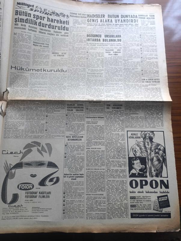 Milliyet Gazetesi - 29 Mayıs 1960 - hükümet kuruldu - Reisicumhur ve Başvekil Orgeneral Cemal Gürsel seçimin 3 ay içinde yapılacağını söyledi - başvekil müdafaa vekili ve silahlı kuvvetler başkumandanı Orgeneral Cemal Gürsel başvekalette Fotoğrafı - Cemal Gürsel ayan Meclisi anayasa mahkemesi tesis edilecek dedi - yeni kabine - devlet vekili Amil Artuz ve Şefik İnan - Maarif vekili profesör Fehmi Yavuz - Alparslan Türkeş fotoğraf - Hürriyet şehitleri için kampanya - Hürriyet şehitlerinden Turan Emeksizin mezarı Fotoğrafı - yeni vekillerin hal tercümesi - İlim ve hukuk heyeti ilk tebliği yayınladı - harp okulunda muhafazada tutulan Celal Bayar Adnan Menderes Namık Gedik Refik Koraltan Ethem Menderes ve Fatin Rüştü Zorlu ayrı odalarda kalıyor - polisler silahsız olarak vazifelerine devam ediyor - Türkiye İş Bankası - bugünkü burç falınız - ibret yazan Çetin Altan - bütün spor hareketi şimdilik durduruldu - America Altay ile oynuyor - bankalar yarın açılıyor - Medeni Berk teslim oldu adlı eser, Kitap > Süreli Yayınlar > Gazeteler > Türkiye > Genel > Günlük kategorisinde İkinci El olarak satıştadır.
