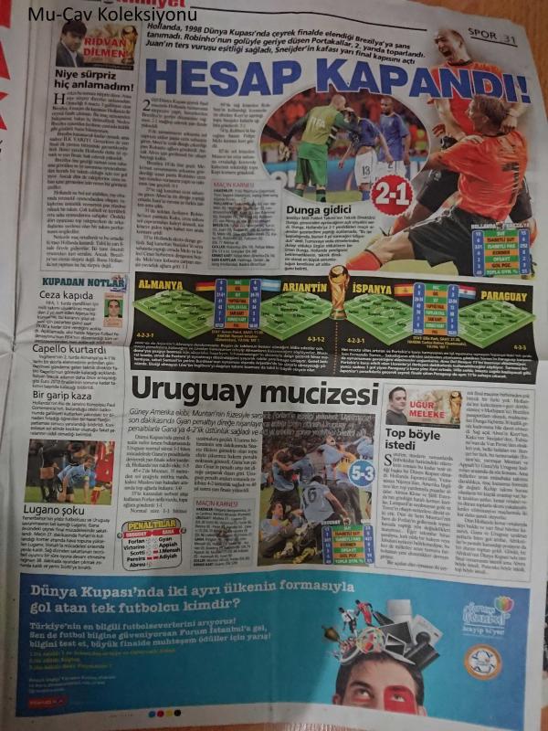 Milliyet Gazetesi, 3 Temmuz 2010, Gerekçe Sorma Lüksümüz Yok, Sosyetede Derin Şüphe, Brezilya Devrildi, Orgeneral İlker Başbuğ, Netenyahu: Türkiye'den Özür Dilemeyeceğiz, Adnan Polat, Murat Başesgioğlu, Uruguay Mucizesi, Lugano Şoku, Arda Turan, Capello Kurtardı, Güiza Yine Kayıp, Aziz Yıldırım, Son Aday Cavenaghi, Nobre, Lavrinovic, Efeler Set Vermedi, Buldozer Berdych, Aykut Kocaman adlı eser Türkçe dilindedir.