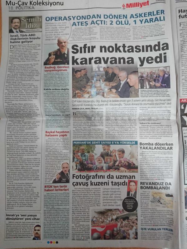 Milliyet Gazetesi, 3 Temmuz 2010, Gerekçe Sorma Lüksümüz Yok, Sosyetede Derin Şüphe, Brezilya Devrildi, Orgeneral İlker Başbuğ, Netenyahu: Türkiye'den Özür Dilemeyeceğiz, Adnan Polat, Murat Başesgioğlu, Uruguay Mucizesi, Lugano Şoku, Arda Turan, Capello Kurtardı, Güiza Yine Kayıp, Aziz Yıldırım, Son Aday Cavenaghi, Nobre, Lavrinovic, Efeler Set Vermedi, Buldozer Berdych, Aykut Kocaman adlı eser, Kitap > Süreli Yayınlar > Gazeteler kategorisinde İkinci El olarak satıştadır.