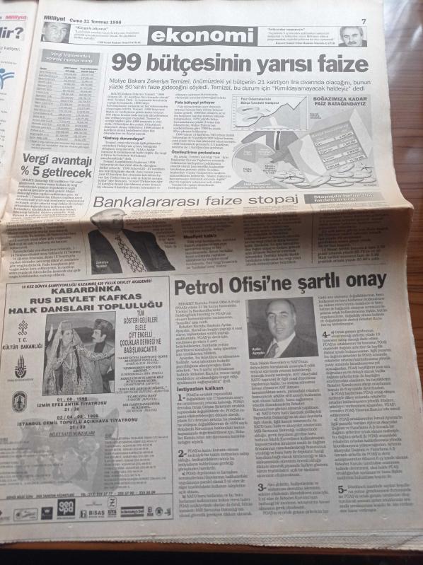 Milliyet Gazetesi - 31 Temmuz 1998 - Tarkan Vatanıma Canım Feda - Galatasaraylı Filipescu'ya Çifte Talip - Mirsad Türkcan Yıldız Olacak - Okocha Çizmeyi Aştı - Tansu Çiller'in Annesi Muazzez Çiller - DTP'de Refaiddin Şahin Krizi - Bill Clinton Zorda - ABD'de Monica Lewinsky Skandalı - Gökova Termik Santrali Durmadı - Sansürün Adı RTÜK - Seçime Rekor Oy 488 Milletvekili Nisan'da Seçime Evet Dedi adlı eser Türkçe dilindedir.