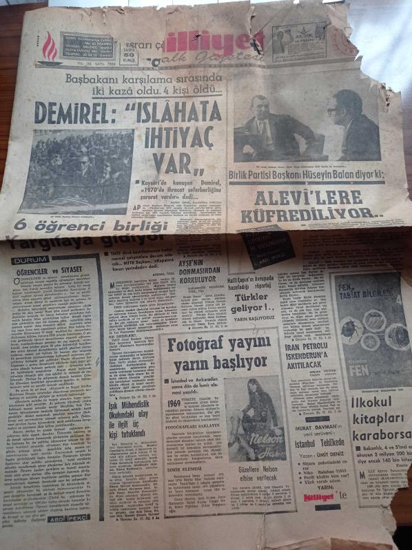 Milliyet Gazetesi - 4 Ekim 1969 - Alparslan Türkeş Hitler'e Özenmiyorum - Alevi'lere Küfrediliyor - Sahalardaki Çirkin Olaylara Paydos - İsmail Akçay Maraton Koşu İçin Kosice'ye Gitti - Süleyman Demirel Islahata İhtiyaç Var - - Halit Çapın - 6 Öğrenci Birliği Yargıtay'a Gidiyor - Von Braun Ay'da - Kemal Bisalman - Atina Cuntaya Karşı Direnme Şiddetlendi - Abdi İpekçi adlı eser, Kitap > Süreli Yayınlar > Gazeteler kategorisinde İkinci El olarak satıştadır.