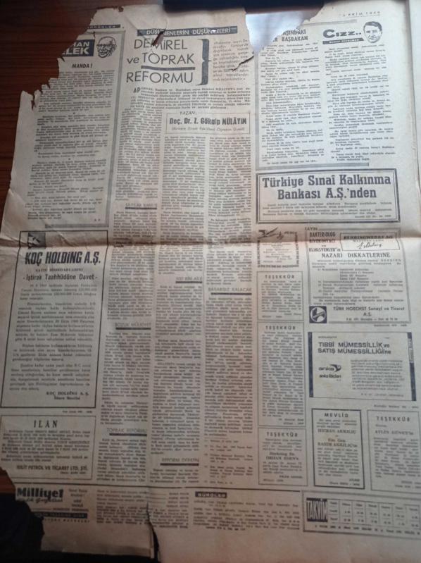 Sayfa Boyutu: 38*56cm Sayfa Sayısı: 8 Milliyet Gazetesi Yıpranma, sararmalar, kupon kesiği ve yırtılmalar zamana bağlı olarak görülebilir Not: Gazetenin Eksik Sayfaları Vardır Bilginize