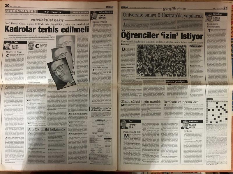 Milliyet Gazetesi - 4 Mayıs 1999 - AP - Galatasaray - Süleyman Demirel - Fransa - ANAP - Merve Kavakçı - Ege - Yusuf - Isla - MHP - Eder - Taha Akyol - PAK - DSP - DYP - Bülent Ecevit - Tansu Çiller - Deniz Baykal - CHP - Redd - Hasan Cemal - Duman - Teknik Direktör - Eren - Beşiktaş - Almanya - Michael Schumacher - Cengiz - Belçika - İtalya - Joker - Trabzonspor - Disiplin Kurulu - Hagi - Alpay - LP - Fatih Terim - Aziz - Aziz Yıldırım - Fenerbahçe - Karabükspor - Taffarel - Puan Durumu - Hakan Şükür - Moldova - Adamlar - Gökçe - MSP - Onur - Vural Savaş - Didi - Emre - Anayasa Mahkemesi - Selçuk - Hikmet Çetin - Murat Karayalçın - Ertuğrul Günay - Ercan Karakaş - Erol Çevikçe - Erdoğan - Mahmut - Fikri Sağlar - Ali Topuz - Devlet Bahçeli - Alparslan Türkeş - Hadise - Müller - Nazlı Ilıcak - Basın Toplantısı - Malta - Zara - Buray - Şener - Abdüllatif Şener - Yaşar Okuyan - Döviz kuru - Uzi - Isak adlı eser Türkçe dilindedir.