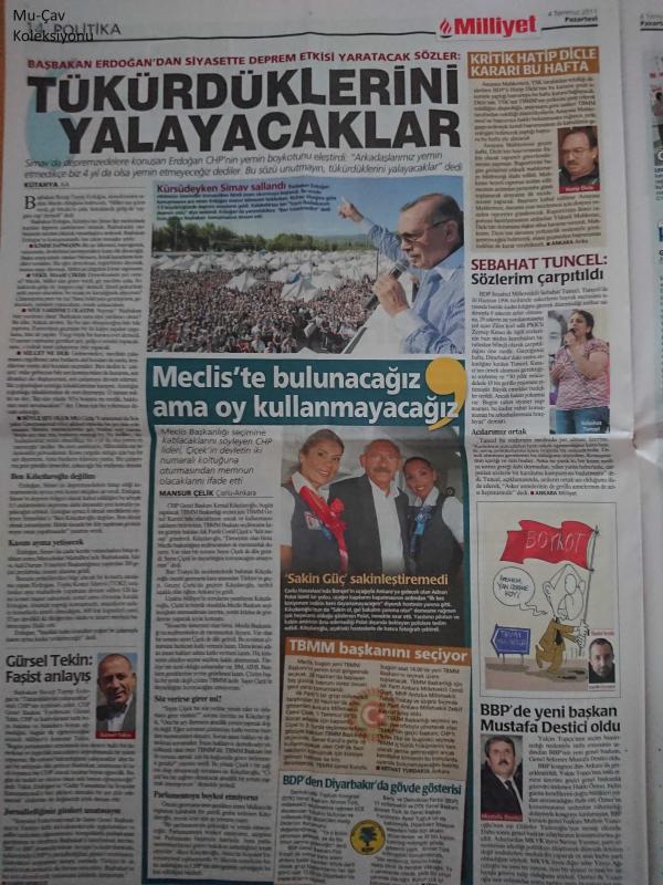 Milliyet Gazetesi,4 Temmuz 2011,Futbolda Şike Depremi,Tükürdüklerini Yalayacaklar,Kriz Gölgesinde Başkan Seçimi,Muslera'da İşlem Tamam,Trabzonspor'a Alman Pastası adlı eser Türkçe dilindedir.