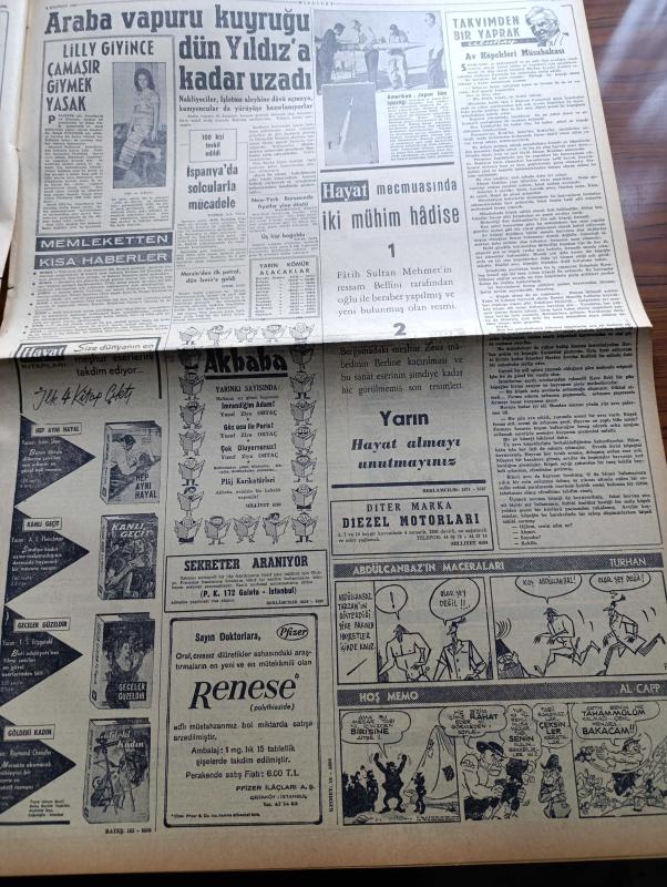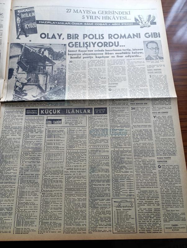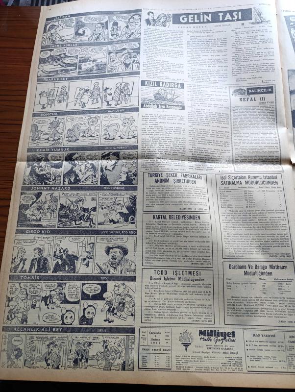 Milliyet Gazetesi - 6 Haziran 1962 - Adalet Partisi İdare Kurulu İstifa Etti - Necmi Ökten Adalet Parti'sinden İstifa Etti - Beşer 1 Yıla Mahkum - CHP Meclis Grubu İsmet İnönü'ye Yetki Verdi - Tanınmış Sinema Yıldızı Van Heflin İstanbul'da - Sadece Hesap Makinesi Çalan Bir Hırsız Yakalandı - Cemal Gürsel Bugün İsmet İnönü'den Başkasına Başbakanlık Tevdi Edilemez Dedi - Ayasofya Müzesinin Minaresinde Yangın Çıktı - Çetin Altan Köşe Yazısı - Araba Vapuru Kuyruğu Dün Yıldız'a Kadar Uzadı - Gelin Taşı Yazan Yaman Koray Yazı Dizisi - Kızıl Kadırga Yazan Abdullah Ziya Kozanoğlu Yazı Dizisi - Cici Can Çizen Bedri - Tombik Çizen Trog - 27 Mayıs'ın Gerisindeki 5 Yılın Hikâyesi Hazırlayanlar Ömer Sami Coşar Abdi İpekçi - Fellini'nin Yaptığı Bir Filmle İtalyan Sosyetesinin İpliği Pazara Çıktı - Grundig Radyo - Lambretta Motorsikletlerin Büyük Rally Kafilesi Geldi - Fenerbahçe İle İddialı Maç Yapacağız - Karagümrük Tarık Kutver'i 50 Bin Liraya Galatasaray'a Verecek - Galatasaray Beşiktaş adlı eser, Kitap > Süreli Yayınlar > Gazeteler > Türkiye > Genel > Günlük kategorisinde İkinci El olarak satıştadır.
