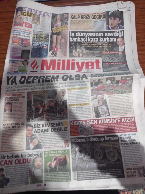 Milliyet Gazetesi - 6 Şubat 2011 - Başmanken Serenay Sarıkaya - İş Dünyasının Sevdiği Bankacı Megalli Kaza Kurbanı - CHP'li Süheyl Batum Asker Kağıttan Kaplanmış - Anayasa Mahkemesi Başkanı Haşim Kılıç Biz Kimsenin Adamı Değiliz - Hüsnü Mübarek'e Check Up Formülü - Rıdvan Dilmen Futbol Oynarken Kalp Krizi Geçirdi - Cumartesi Anneleri Dolmabahçe'de Başbakan Recep Tayyip Erdoğanla adlı eser Türkçe dilindedir.