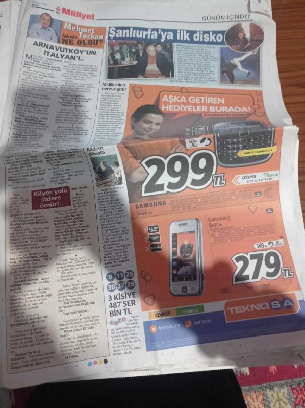 Milliyet Gazetesi - 6 Şubat 2011 - Başmanken Serenay Sarıkaya - İş Dünyasının Sevdiği Bankacı Megalli Kaza Kurbanı - CHP'li Süheyl Batum Asker Kağıttan Kaplanmış - Anayasa Mahkemesi Başkanı Haşim Kılıç Biz Kimsenin Adamı Değiliz - Hüsnü Mübarek'e Check Up Formülü - Rıdvan Dilmen Futbol Oynarken Kalp Krizi Geçirdi - Cumartesi Anneleri Dolmabahçe'de Başbakan Recep Tayyip Erdoğanla adlı eser, Kitap > Süreli Yayınlar > Gazeteler kategorisinde İkinci El olarak satıştadır.