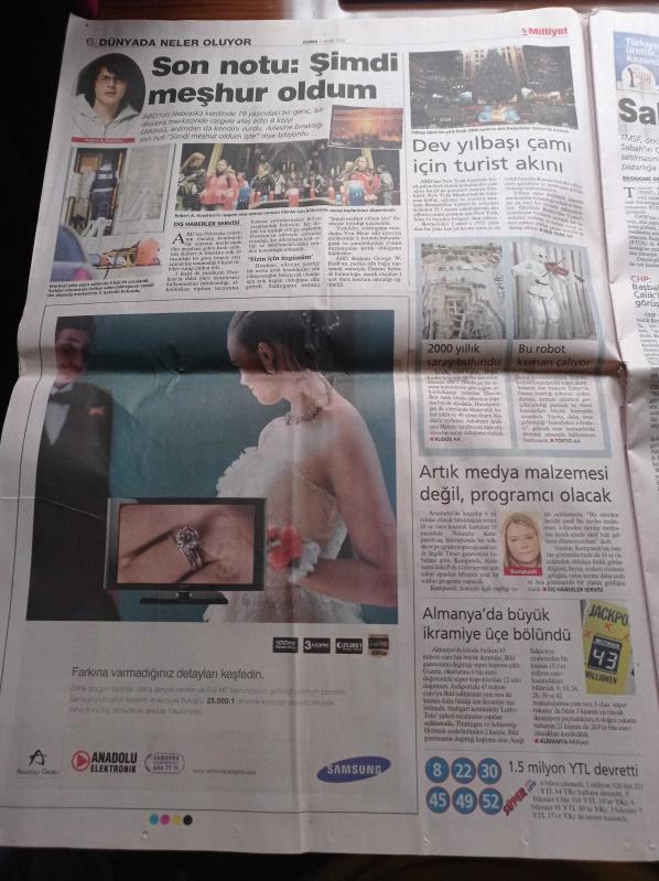 Milliyet Gazetesi - 7 Aralık 2007 - 27 Milyon Kişi Binbir Gece Dizisi İçin Ekran Karşısında - Büyükelçi Ecvet Tezcan'ın Evinde Korkunç Kaza - TMSF Çalık Gruba Onay Verdi - Müthiş Türk Dünya Devi Cola Cola'nın CEO'su Muhtar Kent - Alevilere Yeni Elbise Tartışması - Profesör Tankut Öktem'i Öldüren Hata - Başbakan Recep Tayyip Erdoğan Türk İş'i Övdü adlı eser Türkçe dilindedir.