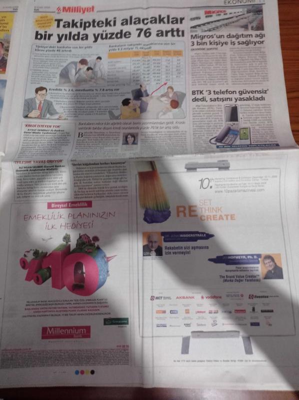 Milliyet Gazetesi - 8 Aralık 2009 - Mustafa Denizli - Fenerbahçe'nin Sorunu Dışarıda - Tiger Woods'un Haremi Ortaya Çıkıyor - Beyin Gücüyle Ekrana Harf Yazdılar - PKK'lılar Molotofla Otobüste Serap'ı Yaktı - Barack Obama Arkadaşım Recep Tayyip Erdoğan - Kapalı Duruşmada Eski Genelkurmay Başkanı Hüseyin Kıvrıkoğlu Sürprizi - Finansın Türk Starı Müge Ekşi - Mehmet Ali Ağca İle Röportaj 2 Milyon Dolar adlı eser Türkçe dilindedir.
