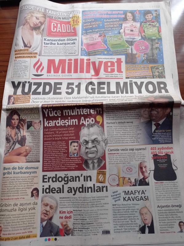 Milliyet Gazetesi - 8 Kasım 2009 - Hakkında Uluslararası Ceza Mahkemesinin Tutuklama Kararı Bulunun Sudan Cumhurbaşkanı Ömer El Beşir İstanbul Ziyaret Edecek - Hülya Avşar Hizmetçisine Klip Çekti - Irak Cumhurbaşkanı Celal Talabani'nin 18 Yıl Sonra Ortaya Çıkan Mektubu - Yüce Muhterem Kardeşim Apo - Recep Tayyip Erdoğan'ın İdeal Aydınları - Necip Fazıl Kısakürek - MHP Kongresi Siyaseti Gerdi adlı eser Türkçe dilindedir.