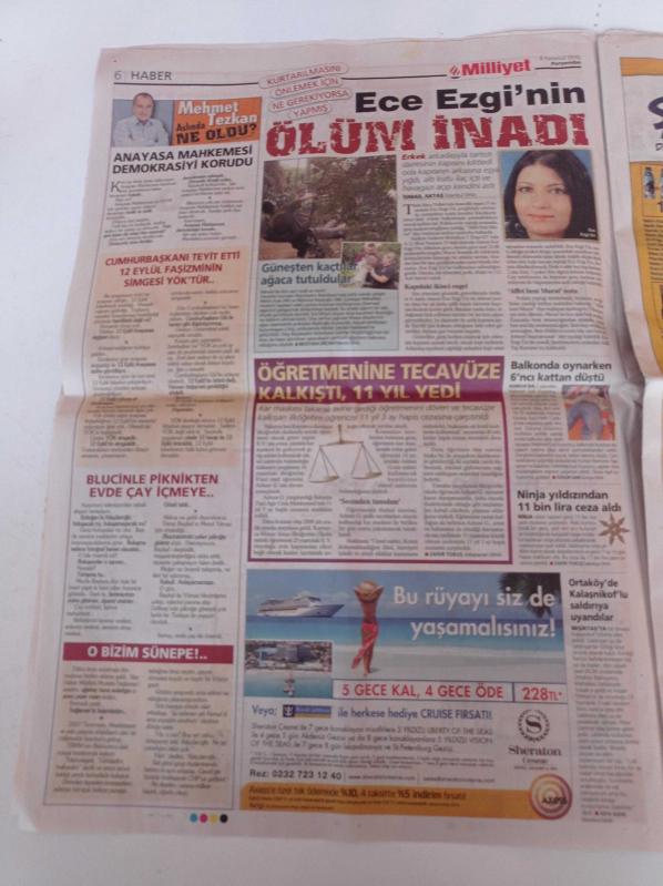 Milliyet Gazetesi - 8 Temmuz 2010 - Yelkenli Sporları - Dünya Kupası - İsrail'e Yıldızlı Protesto - Dustin Hoffman - Meg Ryan - Balyoz Davası Rekorları - Anayasa Mahkemesi Başkanı Haşim Kılıç Hukuk Devletine Aykırı - Bekir Bozdağ'ın Deniz Baykal Aşkı - Abdullah Gül adlı eser, Kitap > Süreli Yayınlar > Gazeteler kategorisinde İkinci El olarak satıştadır.