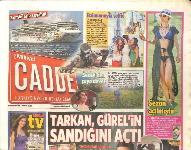 Milliyet Gazetesi Cadde Eki 11 Temmuz 2015 - Sezen Aksu'dan Çaya Davet - Tarkan, Aysel Gürel'in Gün Yüzüne Çıkmamış Albümlerini Besteleyecek GZ154594, en son 19 gün önce güncellenmiştir.