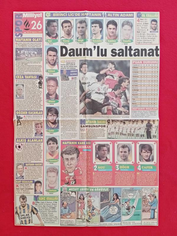 Milliyet Gazetesi Spor Sayfası - 22 Ağustos 1995 - Beşiktaş