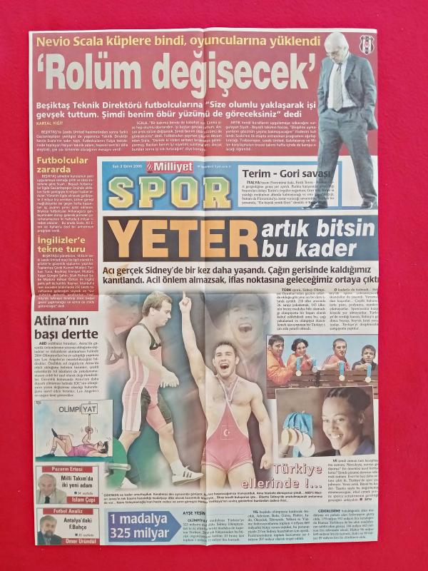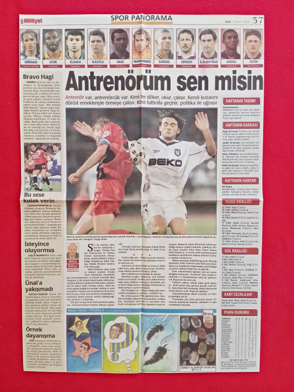 Milliyet Gazetesi Spor Sayfası - 3 Ekim 2000 - Beşiktaş