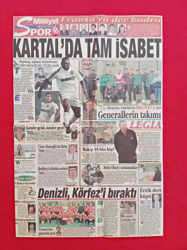 Milliyet Gazetesi Spor Sayfası - 8 Ekim 1996 - Beşiktaş