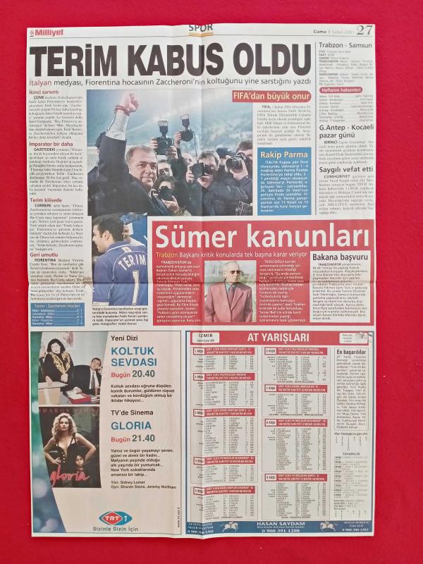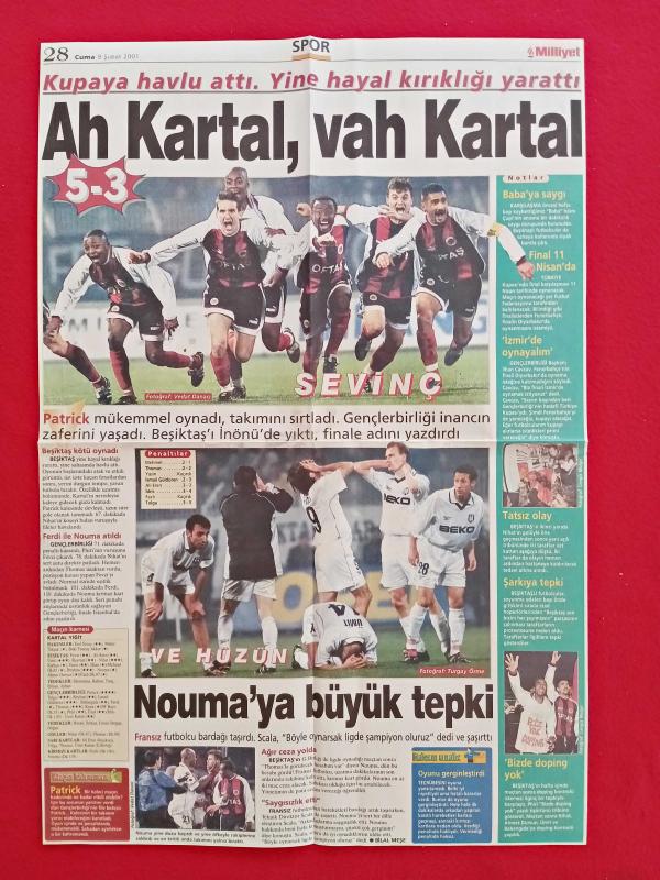 Milliyet Gazetesi Spor Sayfası - 9 Şubat 2001 - Beşiktaş, Gençlerbirliği