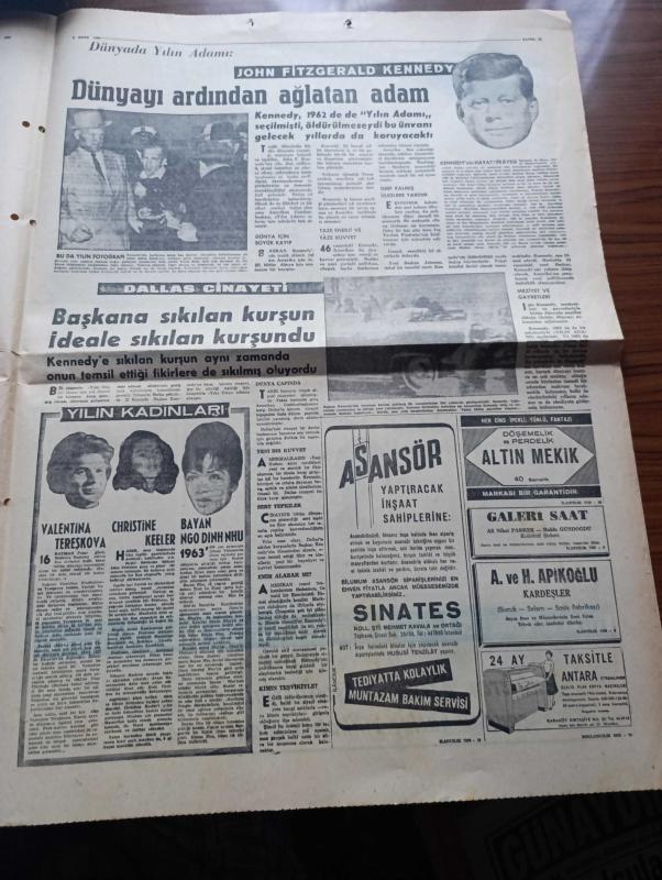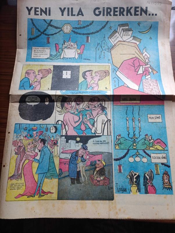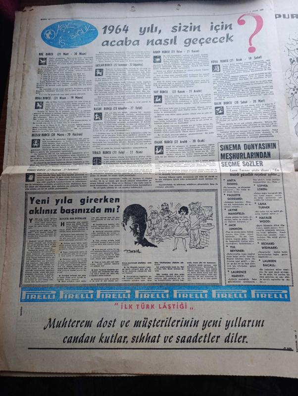 Milliyet Gazetesi - Turkish Newspaper - 1 Ocak 1964 - yeni yıl karikatürleri - Noel Baba Karikatür - bir yılbaşı hikayesi her şerrin sonu hayırdır yazan Adnan Tahir - Grundig radyo - Neşe çikolata şekerleme fabrikası yeni yılınızı kutlar - Zambo ciklet çikolata yeni yılınızı kutlar - yeni yıl için Kehanette bulunan Gürcü bacıya göre 3. Koalisyon ömürlü olacak - tarihin en büyük müneccimi Nostradamusa göre 1964'te Dünyada neler olacak - dünyada yılın adamı John Fitzgerald Kennedy - Türkiye'de yılın adamı İsmet İnönü - Dallas cinayeti Kennedy'e sıkılan kurşun - mutlu akü yeni yılınızı kutlar - 1964 takvimi - 1964 yılı sizin için acaba nasıl geçecek - Pirelli yeni yılınızı kutlar - sinema dünyasının meşhurlarından seçme sözler - Sophia Loren - Anita Ekberg - yılın kadınları Valentino Tereşkova Christiane Keeler ve Bayan Ngo Dinh Nhu - apikoğlu kardeşler yeni yılınızı kutlar - 20 21 Mayıs rejime karşı bir hareket - Talat Aydemir Adalet huzurunda fotoğraf - Sümerbank, Ali Naci Karacan tarafından kaleme alınmıştır. Milliyet Gazetesi - Turkish Newspaper - 1 Ocak 1964 - yeni yıl karikatürleri - Noel Baba Karikatür - bir yılbaşı hikayesi her şerrin sonu hayırdır yazan Adnan Tahir - Grundig radyo - Neşe çikolata şekerleme fabrikası yeni yılınızı kutlar - Zambo ciklet çikolata yeni yılınızı kutlar - yeni yıl için Kehanette bulunan Gürcü bacıya göre 3. Koalisyon ömürlü olacak - tarihin en büyük müneccimi Nostradamusa göre 1964'te Dünyada neler olacak - dünyada yılın adamı John Fitzgerald Kennedy - Türkiye'de yılın adamı İsmet İnönü - Dallas cinayeti Kennedy'e sıkılan kurşun - mutlu akü yeni yılınızı kutlar - 1964 takvimi - 1964 yılı sizin için acaba nasıl geçecek - Pirelli yeni yılınızı kutlar - sinema dünyasının meşhurlarından seçme sözler - Sophia Loren - Anita Ekberg - yılın kadınları Valentino Tereşkova Christiane Keeler ve Bayan Ngo Dinh Nhu - apikoğlu kardeşler yeni yılınızı kutlar - 20 21 Mayıs rejime karşı bir hareket - Talat Aydemir Adalet huzurunda fotoğraf - Sümerbank adlı eser Türkçe dilindedir.