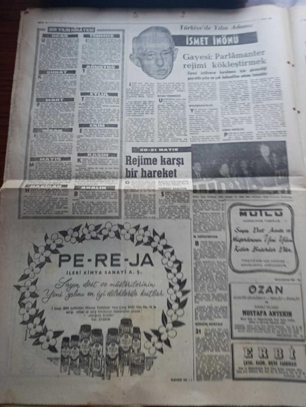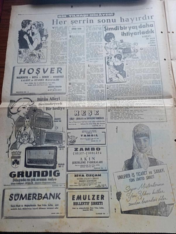 Milliyet Gazetesi - Turkish Newspaper - 1 Ocak 1964 - yeni yıl karikatürleri - Noel Baba Karikatür - bir yılbaşı hikayesi her şerrin sonu hayırdır yazan Adnan Tahir - Grundig radyo - Neşe çikolata şekerleme fabrikası yeni yılınızı kutlar - Zambo ciklet çikolata yeni yılınızı kutlar - yeni yıl için Kehanette bulunan Gürcü bacıya göre 3. Koalisyon ömürlü olacak - tarihin en büyük müneccimi Nostradamusa göre 1964'te Dünyada neler olacak - dünyada yılın adamı John Fitzgerald Kennedy - Türkiye'de yılın adamı İsmet İnönü - Dallas cinayeti Kennedy'e sıkılan kurşun - mutlu akü yeni yılınızı kutlar - 1964 takvimi - 1964 yılı sizin için acaba nasıl geçecek - Pirelli yeni yılınızı kutlar - sinema dünyasının meşhurlarından seçme sözler - Sophia Loren - Anita Ekberg - yılın kadınları Valentino Tereşkova Christiane Keeler ve Bayan Ngo Dinh Nhu - apikoğlu kardeşler yeni yılınızı kutlar - 20 21 Mayıs rejime karşı bir hareket - Talat Aydemir Adalet huzurunda fotoğraf - Sümerbank adlı eser, Kitap > Süreli Yayınlar > Gazeteler > Türkiye > Genel > Günlük kategorisinde İkinci El olarak satıştadır.